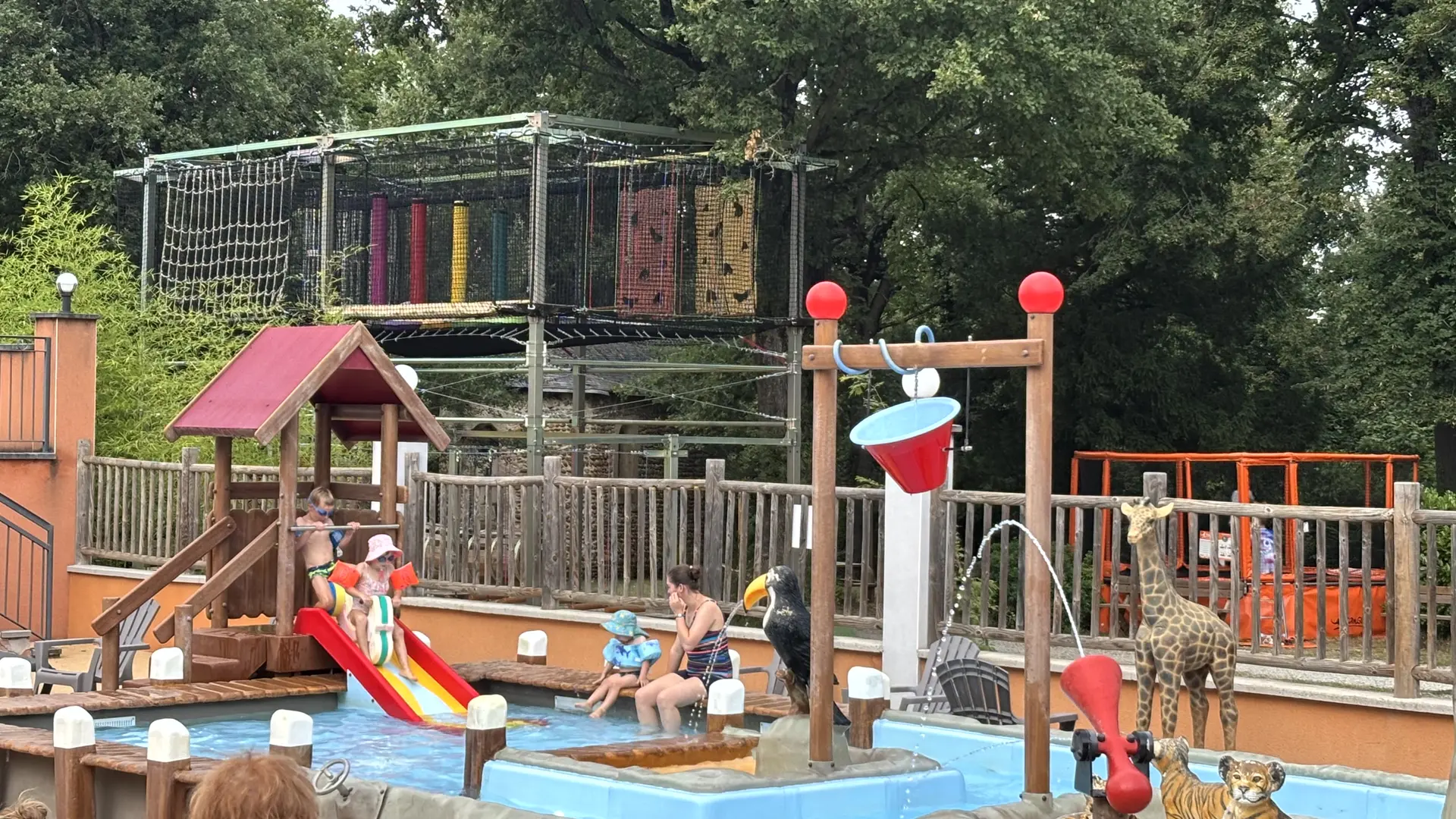 On site, paddling pool, swimming pool, mini water slide and solarium.