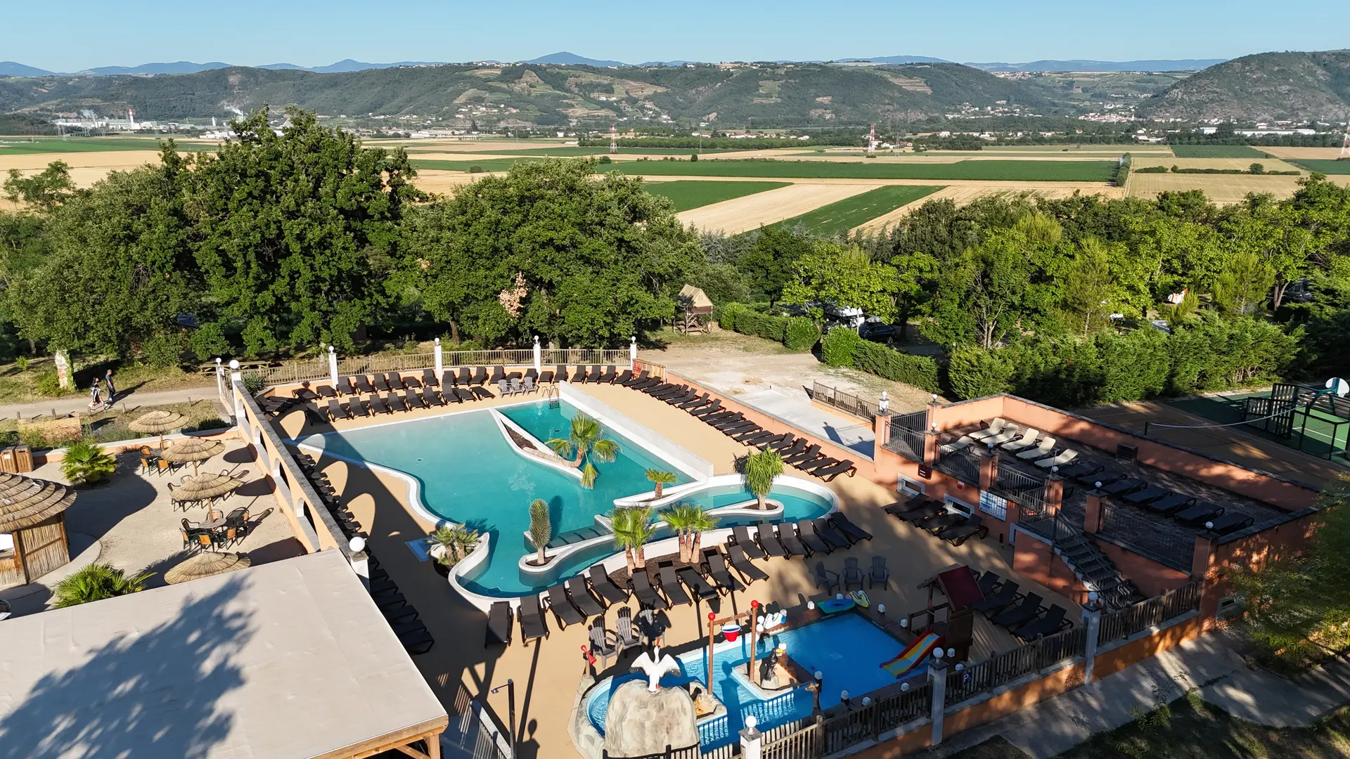 Nestled in a green setting, in the heart of an 18-hole golf course, lies a rare pearl: a 3-star family campsite with a breathtaking view of the Rhône Valley. You will be seduced by its magnificent swimming pool and its various unusual accommodations.